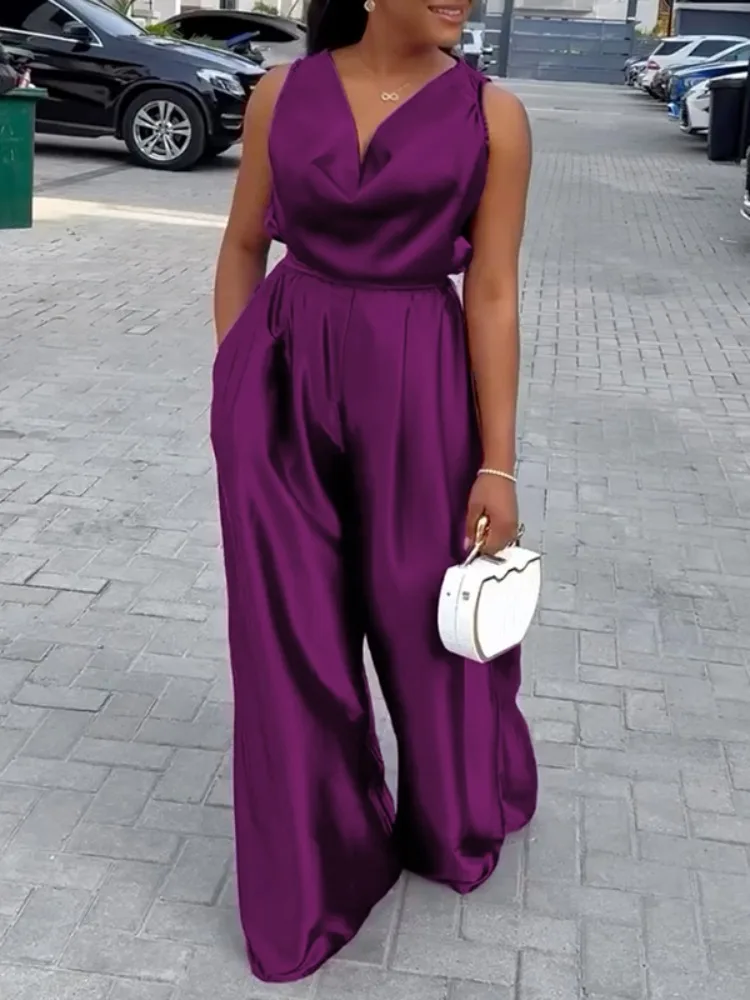 Gymystars Tute femminili con scollo a V Tute viola Estate allentate senza maniche con scollo a V profondo Elegante tuta intera a gamba larga da donna